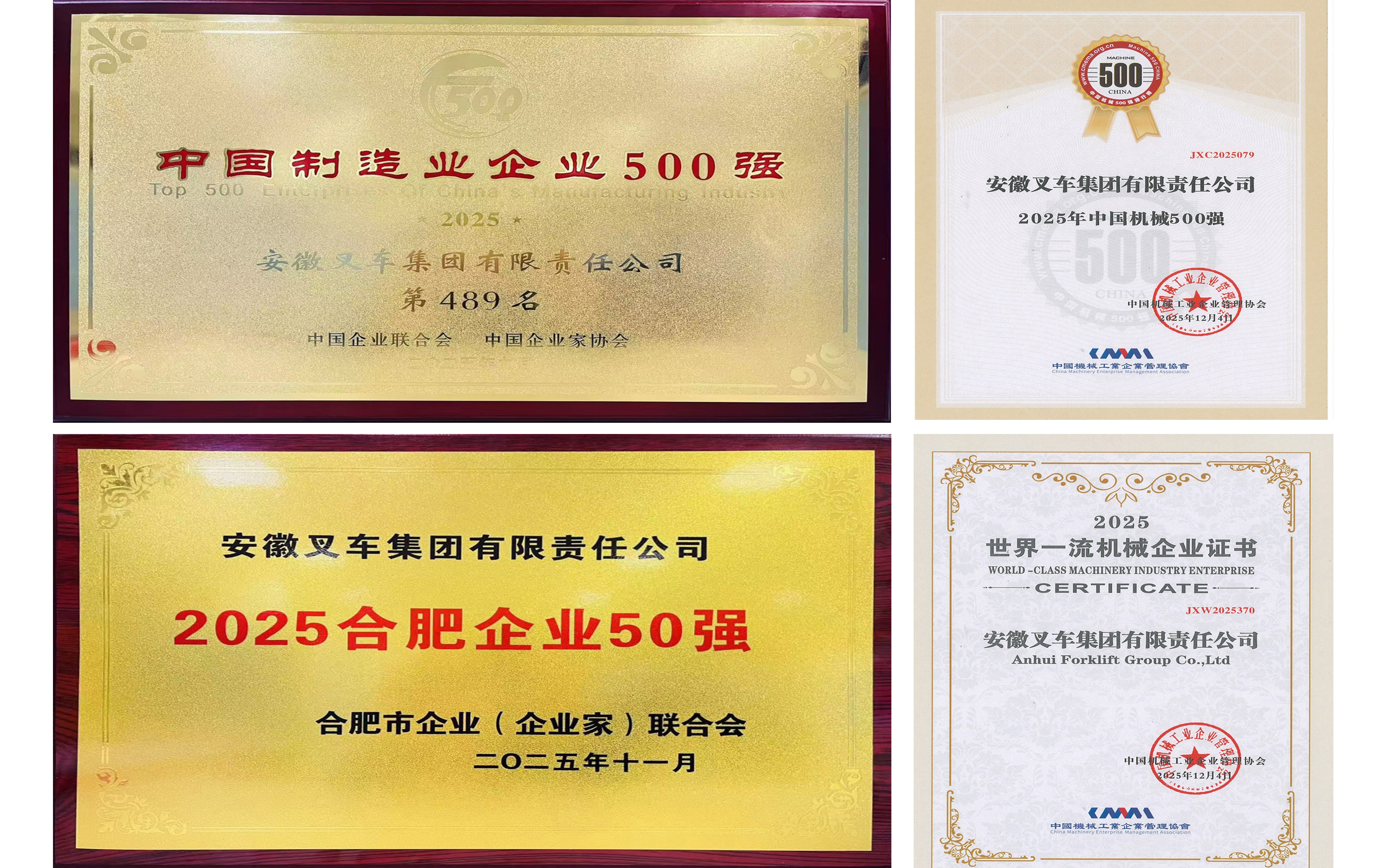 自2000年以來(lái),合力累計(jì)獲得科技進(jìn)步獎(jiǎng)70余項(xiàng),其中安徽省科技進(jìn)步獎(jiǎng)20余項(xiàng)(一等獎(jiǎng)4項(xiàng))。 合力擁有國(guó)家級(jí)企業(yè)技術(shù)中心和國(guó)家級(jí)工業(yè)設(shè)計(jì)中心,入選“創(chuàng)建世界一流專精特新示范企業(yè)”“國(guó)家制造業(yè)單項(xiàng)冠軍示范企業(yè)”名單,榮獲“全國(guó)供應(yīng)鏈創(chuàng)新與應(yīng)用示范企業(yè)”稱號(hào)等。